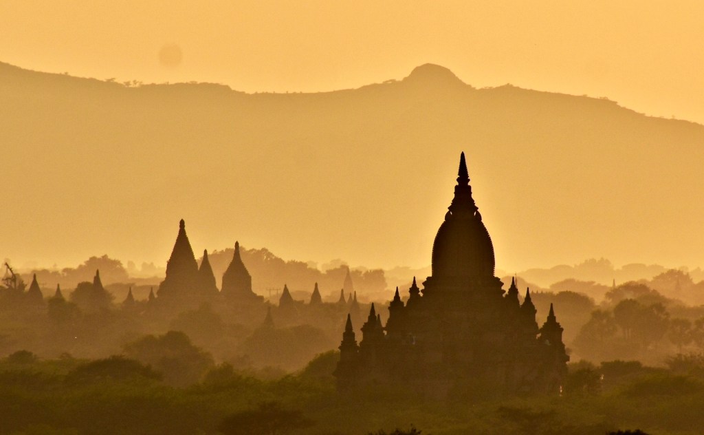 The sunset in the city of Bagan in Myanmar is one of the most romantic sights one can witness. The slowly setting sun on the horizon, dipping down behind the hills in west is a sight to savour. It leaves an life long impression on your conscious.
