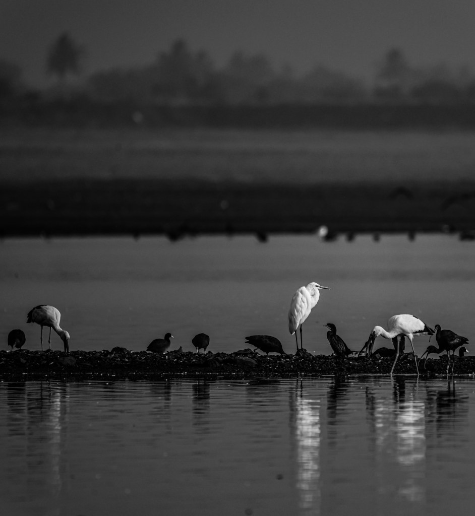 The choice to see in black and white was based on emotion more than skill. It cleared the pictures of distractions and forced me to look deeper – at the gap between motion and quiet, the interaction between light and air. Sometimes I’d discover a bird sitting alone, as if it were contemplating. Sometimes a rapid rush of wings would fill the frame and for a little moment, everything blended into elegance. Colour seemed unneeded in those few seconds.