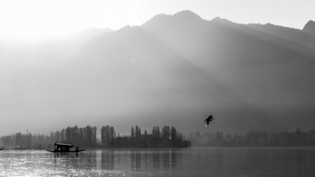 The air was still, and the fog had descended low over the water, softening every edge, silencing every sound. The mountains stood like shadows behind the mist, and the shikara drifted slowly, its reflection trembling on the surface. I remember standing there, camera in hand, waiting for something to move — and then, a lone bird took flight across the pale sky. Its dark wings cut through the light like ink on paper. There was no colour, yet nothing felt missing. In that quiet moment, black and white seemed to hold everything — peace, balance and truth. That was the beginning of All The Colours I Couldn’t See.